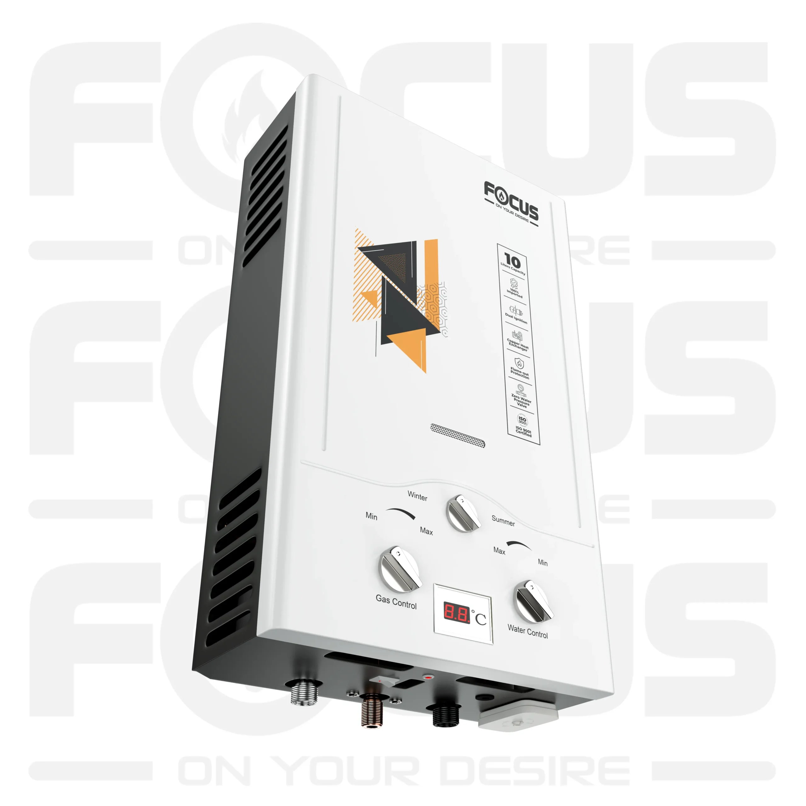 Focus Instant 10 Liters Gas Geysers with Dual Ignition | 100% Imported | LPG and Natural Gas Supported | Model 10FG7 | 10 Liters Capacity