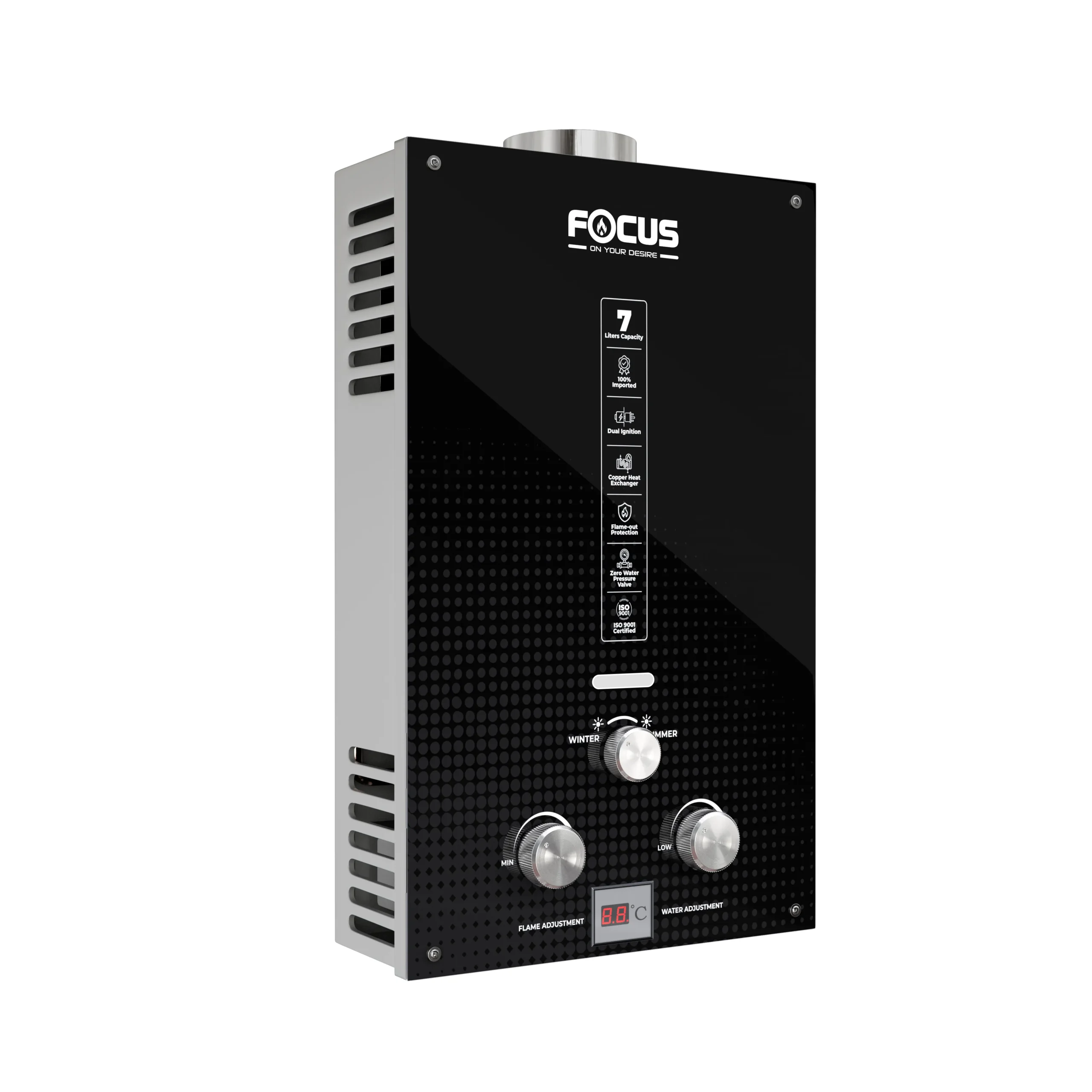 Focus Instant 7 Liters Gas Geysers with Dual Ignition | 100% Imported | LPG and Natural Gas Supported | Model 7FG7 | 7 Liters Capacity